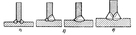 швы выполняют с небольшим усилением (выпуклыми). Если требуются швы без усиления, это должно быть указано на чертеже. Ослабленными (вогнутыми) выполняют угловые швы, что также отмечается на чертеже. Такие швы требуются для улучшения работы сварных соединений, например при переменных нагрузках. Стыковые швы ослабленными не делают, вогнутость в этом случае является браком. Увеличение размеров сварных швов по сравнению с заданными приводит к увеличению массы свариваемой конструкции и перерасходу электродов. В результате возрастает себестоимость сварных конструкций, повышается трудоемкость сварочных работ.