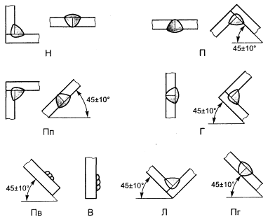 Примеры обозначения сварных швов по их положению в пространстве даны на рисунке 13