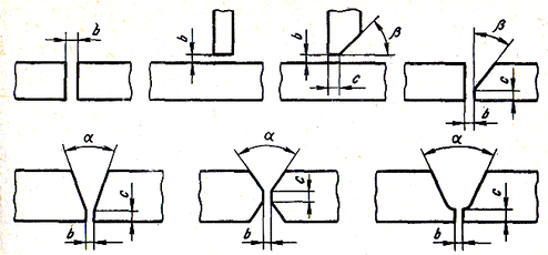 Форму разделки кромок и их сборку под сварку характеризуют четыре основных конструктивных элемента (рисунок 7): зазор b, притупление с, угол скоса кромки