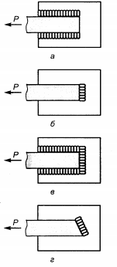 По действующему усилию швы делят на продольные (фланговые), поперечные (лобовые), комбинированные, косые (рисунок 11). Лобовой шов расположен перпендикулярно к усилию Р, фланговый - параллельно, а косой - под углом.