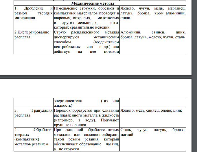 Механические методы получения металлических порошков: дробление, размол, диспергирование.