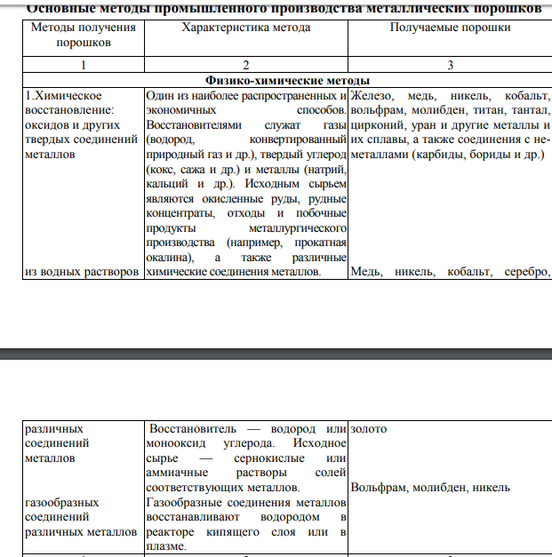 Металлические порошки – основа порошковой металлургии, технология которой начинается с их получения. Метод производства и природа соответствующего металла, сплава или металлоподобного соединения определяют химические (содержание основного металла, примесей и загрязнений, пирофорность и токсичность), физические (форма, размер, удельная поверхность, истинная плотность и микротвердость частиц) и технологические (насыпная плотность, текучесть, уплотняемость, прессуемость и формуемость порошка) свойства получаемого металлического порошка.