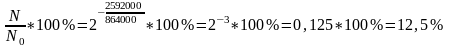 Сколько процентов начального количества актиния останется: через 10 дней, через 30 дней? ( ТАс =