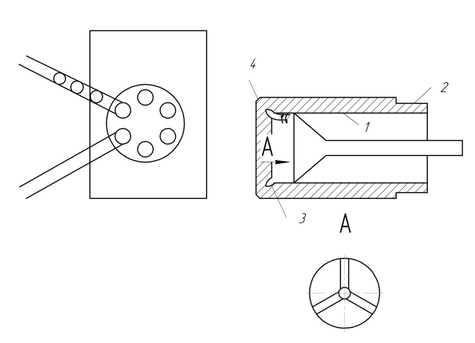 Обработка поверхности 1 с помощью трехперого зенкера – обточка внутренней поверхности. Этот зенкер имеет 3 режущих лезвия. Обработка поверхности 2 осуществляется от поперечного суппорта. 3 операция – прорезка канавок. 4 – можно снять фаски.