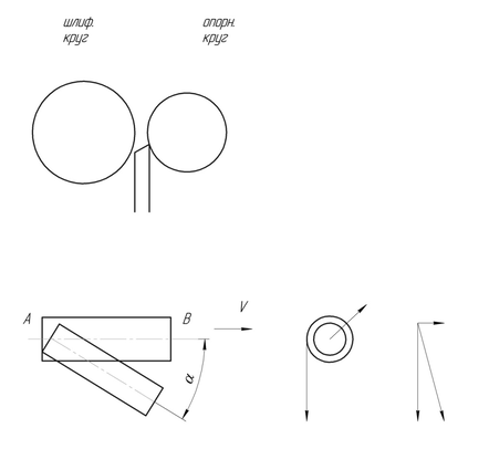 Опорный круг расположен под небольшим углом к опорному кругу. Это надо, чтобы на подшипнике появлялись составляющая скорости V, которая будет перемещать подшипник от А к B.