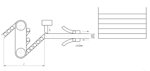 При перемещении влево ползушки на призму падает один подшипник, когда перемещается вправо, то толкает столбик подшипников в сторону шлифовальных кругов. Ползушка играет только отсекателя по одной детали.