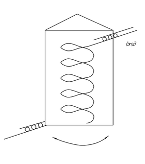 4ая операция охлаждение детали в специальном холодильнике. Деталь подается на верх спирали и спускается вниз. Внутренняя часть совершает колебания (туда-сюда), чтобы двигалась деталь.