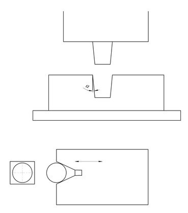 6 – вытяжка. Матрица неподвижная, а пуансон совершает возвратно-поступательные движения. Пуансон имеет конусность (но минимальный). Как подать заготовку? Выгружается с помощью толкателя в отводящий от пресса лоток.