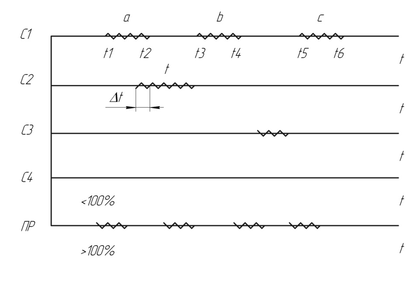 ПР может быть загружен меньше 100% (справляется с работой) и больше 100% - не справляется.