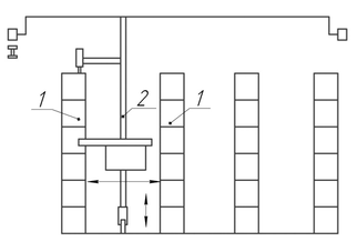Для получения того или иного груза система управления указывает номер ячейки и номер грузка и штабелер 2 выводит этот груз на позицию загрузки/выгрузки 3.