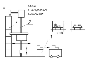 Помимо рассмотренных могут быть стеллажные склады, обслуживаемые мостовым краном штабелера.