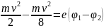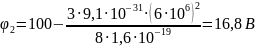 Электрон движется вдоль линии напряженности однородного электрического поля. В некоторой точке с потенциалом φ=100 В электрон имел скорость υ=6 Мм/с. Определите потенциал точки поля, в которой скорость электрона будет в два раза меньше первоночальной.