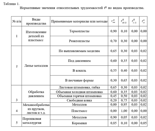 Эти значения используют в том случае, если в технологическом процессе изготовления детали применяют все указанные виды производства (этапы). Если же того или иного этапа в предполагаемом технологическом процессе нет, то соответствующие относительные трудоемкости tн прибавляют к относительным трудоемкостям применяемых видов производства. Оновываясь на табл. 1 и табл. 2, составляем формулы для расчёта комплексных показателей технологичности деталей.