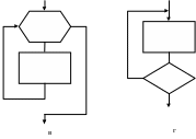 Базисный набор управляющих структур является функционально полным, то есть с его помощью можно создать любой сколь угодно сложный алгоритм. Однако с целью создания более компактных и наглядных алгоритмов дополнительно используются следующие управляющие структуры: а) структура сокращенного ветвления; б) структура выбора; в) структура цикла с параметром; г) структура цикла с постусловием (Рис. 9 .28, соответственно а, б, в, г).
