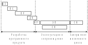 Жизненный цикл ПП состоит из трех стадий (Рис. 10 .49): 1) разработка ПП; 2) эксплуатация и сопровождение; 3) завершение жизненного цикла.