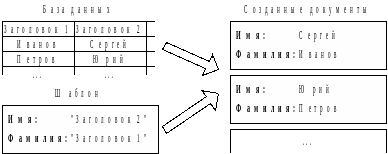 Слияние используется для создания большого количества документов одинакового содержания, но с разными исходными данными. Для слияния необходимо создать шаблон документа и базу данных (Рис. 10 .79).