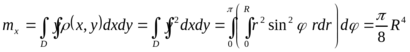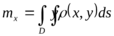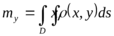 Пусть задана плотность вещества плоской материальной области D (x, y). Выделим элементарную ячейку с массой dm и применим к ней известные формулы для материальной точки: