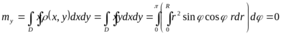 (это было ясно заранее, по симметрии полукруга относительно OYи независимости плотности от координаты x).