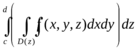 Если сначала перебирать элементы в столбце над областью Dxy, от нижней границы до верхней (внутренний интеграл), а затем перемещать область Dxy в D (внешний двойной интеграл), то получим повторный интеграл