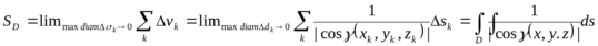 vk=sk/ cosk. Будем измельчать разбиение при условии max diam k 0, что для кусочно-гладкой поверхности, не ортогональной плоскости OXY, равносильно max diam dk 0. Вычислим площадь поверхности как двойной интеграл
