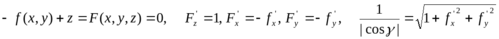 свести к уравнению F(x, y, z) = 0 и применить выведенную формулу: