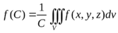 Пусть есть некоторое пространственное материальное тело, занимающее область V, в каждой точке которой задана объемная плотность f(x, y, z). Надо вычислить массу пространственного тела.