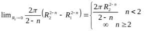 Интеграл второго рода6 определяют как предел последовательности интегралов от непрерывной функции по «расширяющимся» областям, стремящимся к заданной области и исключающим точку разрыва. Если предел существует и конечен, то интеграл называется сходящимся, если предел не существует или бесконечен, то интеграл называется расходящимся.