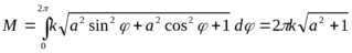 Пример. Вычислить массу одного витка однородной (плотность равна k) винтовой линии: