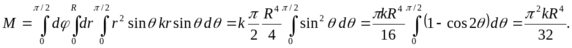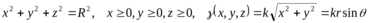 Пример. Найти массу части шара (с центром в начале координат, радиусом R), находящейся в первом октанте, если плотность вещества шара