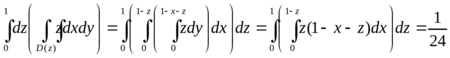 Пример. Вычислить массу тетраэдра плотностью f(x, y, z) = z, ограниченного плоскостями x+y+z = 1, x+z =1, x+y = 1, y+z =1.