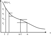 Интегральный признак Коши, основанный на сравнении с несобственным интегралом – очень сильный признак. В самом деле, если аппроксимировать непрерывную подинтегральную функцию кусочно-постоянной, то площадь под графиком функции (интеграл) и площадь под графиком кусочно-постоянной функции будут различаться на конечное число.