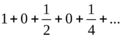 расходится. Он представляет собой сумму двух рядов: сходящейся геометрической прогрессии (нечетные члены) и гармонического ряда (четные члены). Если бы этот ряд сходился, то, вычитая из него почленно сходящийся ряд