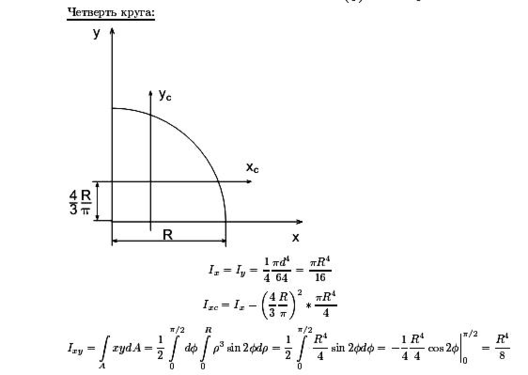 Для круга. Из (4) определим осевой момент инерции круга относительно диаметра. Т.к. в силу симметрии Jx=Jy, получаем Jx=Jy=Jp/2. Известно, что для круга Jp=πD4/32. => Jx=Jy=πD4/64.