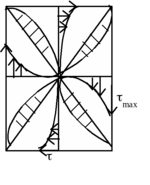 Jk= hb3, Максимальные касательные напряжения max будут посредине длинной стороны, напряжения по середине короткой стороны: = max, коэффициенты: ,, приводятся в справочниках в зависимости от отношения h/b (например, при h/b=2, =0,246; =0,229; =0,795.