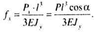 | Прогибы при косом изгибе. Прогиб конца консоли от действия Рx направлен по оси X и равен: |