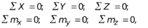 Последние два векторные уравнения равновесия дают шесть скалярных уравнений в проекциях на декартовых осях координат: