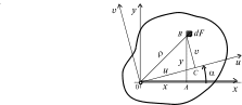 Ju = ∫v2dF; Jv= ∫u2dF; Juv= ∫uvdF. Подставив в выражения (1) и (2) получим: