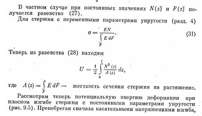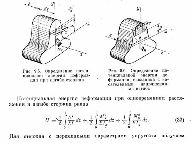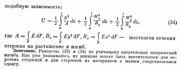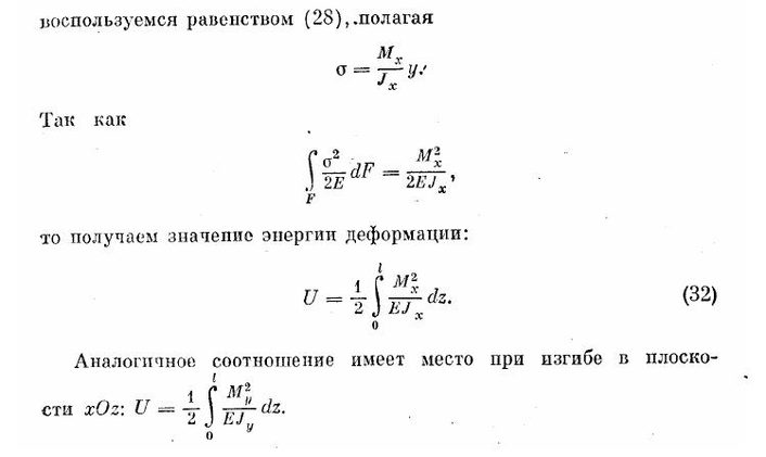 Для случая изгиба нами была получена формула, связывающая величину потенциальной энергии U с изгибающими моментами: