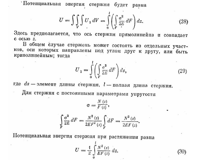Предыдущий вывод был сделан для балки, но совершенно ясно, что его можно повторить для любой конструкции, деформации которой следуют закону Гука.