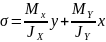 ормальные напряжения в точках поперечного сечения с текущими координатами х, у определяются алгебраической суммой напряжений, вызываемых изгибающими моментами Мx и Мy: