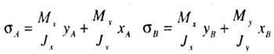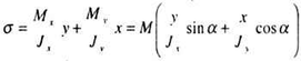 Нормальные напряжения в точках поперечного сечения с текущими координатами х, у определяются алгебраической суммой напряжений, вызываемых изгибающими моментами Мx и Мy: