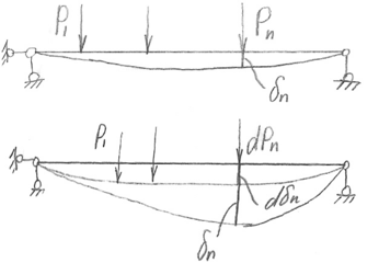 Теорема Кастильяно: Частная производная от потенциальной энергии системы по силе равна перемещению точки приложения силы по направлению этой силы.