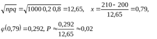 ). (3.43) Известно, что 20% автомобилей нарушают скоростной режим. Какова вероятность того, что из 1000 автомобилей 210 нарушат правила? Здесь надо пользоваться локальной формулой Муавра-Лапласа при n=1000, p=0,2, m=300.