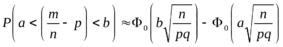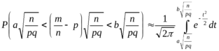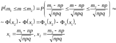 . Если в схеме Бернулли число испытаний n велико, причем p и q=1-p велики, то для всех m справедлива интегральная формула Муавра – Лапласа