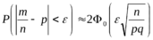.Это означает, что при большом числе испытаний распределение числа успехов становится нормальным. Иногда приходится оценивать вероятность отклонения частоты события от вероятности. Покажем, как можно использовать для этого интегральную формулу Муавра – Лапласа. Заметим, что