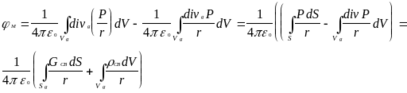 Рассмотрим поляризуемый диэлектрик и поле внутри него и снаружи: