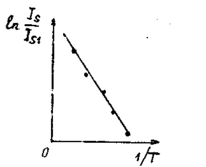 Из опыта, в котором измерен ток насыщения при различной температуре, можно найти значение Ед. Полученную зависимость следует сравнить с формулой, которую логарифмированием преобразуем к виду