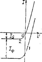 ри освещении p-n-перехода образуются дополнительные электронно-дырочные пары. При достаточном освещении они могут существенно увеличить концентрацию неосновных носителей, которых было мало, практически не изменяя в процентном отношении количество основных носителей. При этой к существовавшему в темноте току неосновных носителей - Is добавляется фототок - I, протекающий в том же направлении.