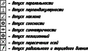 В первой части слева помещают знак допуска, во второй – числовое значение допуска, выраженное в мм, в третьей – базу от которой производится измерение.