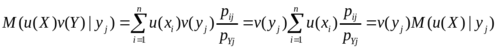 Пусть u(X) и v(Y) – функции от случайных величин X и Y. Тогда M(u(X)v(Y)|Y) = v(Y) M(u(X)|Y)